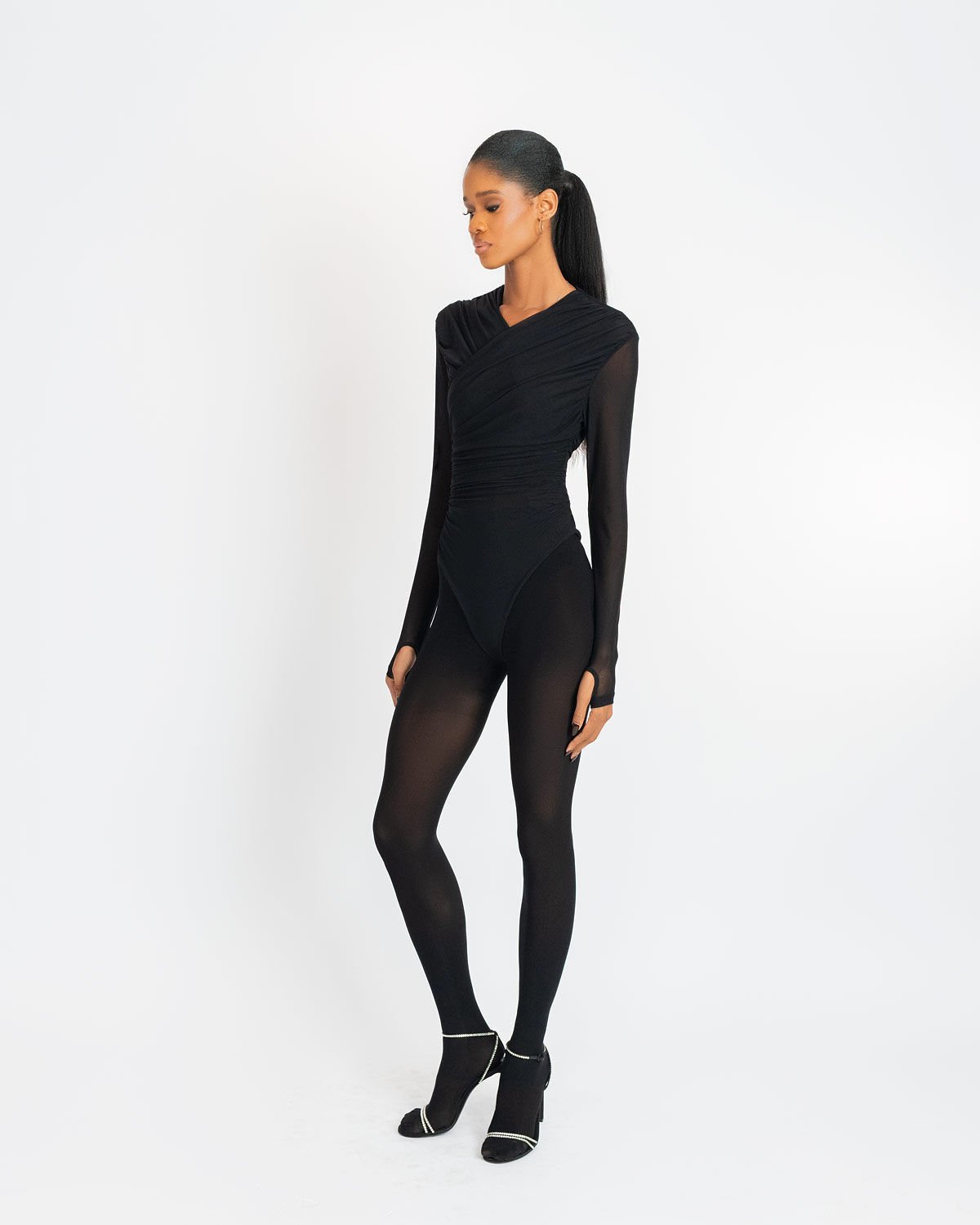Mona sheer black mesh bodysuits made to elevate your style with this sultry, soft yet durable fabric that hugs the curves and offers a seamless fit that feels like a second skin.